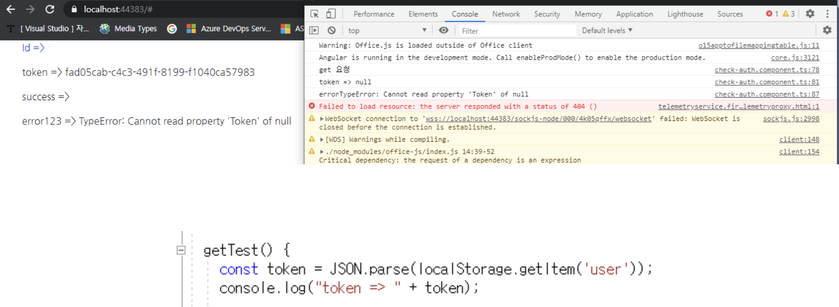 Angular에서 Office Add-in을 개발할 때 MSAL을 통해 로그인 기능을 구현했을 경우,
