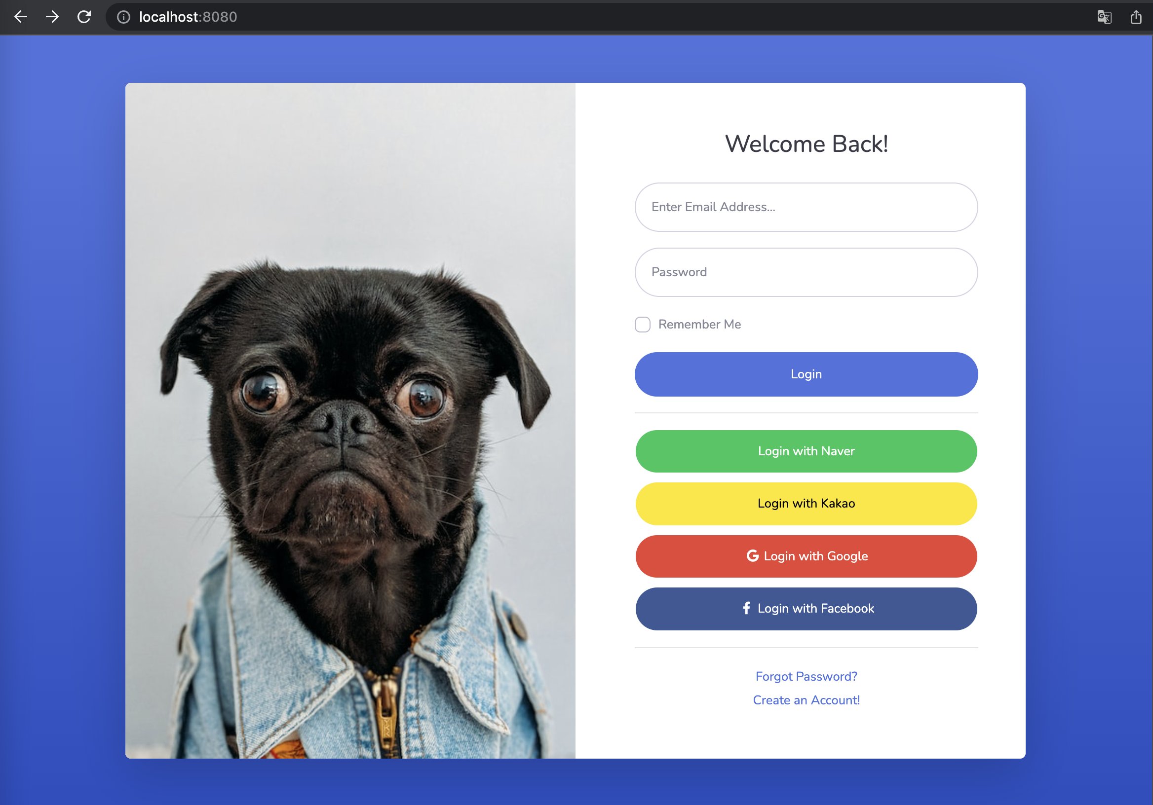 무료 부트스트랩 템플릿을 이용하여, 로그인 화면을 구현했다.