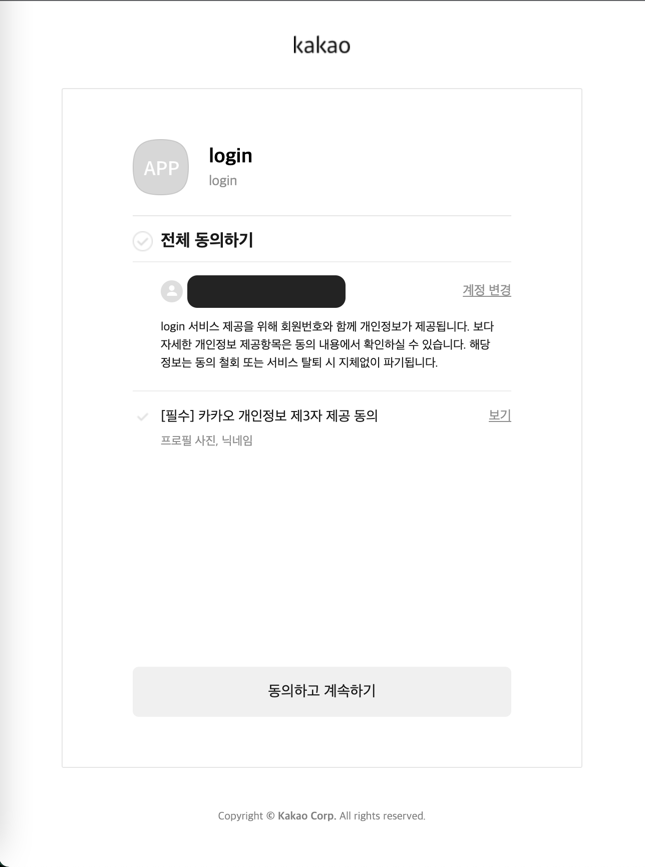 Login with Kakao 버튼을 클릭하면 카카오 로그인 페이지로 이동하게 되고,