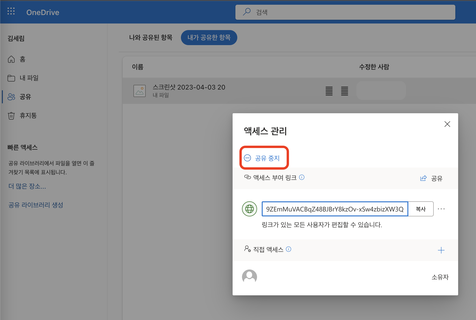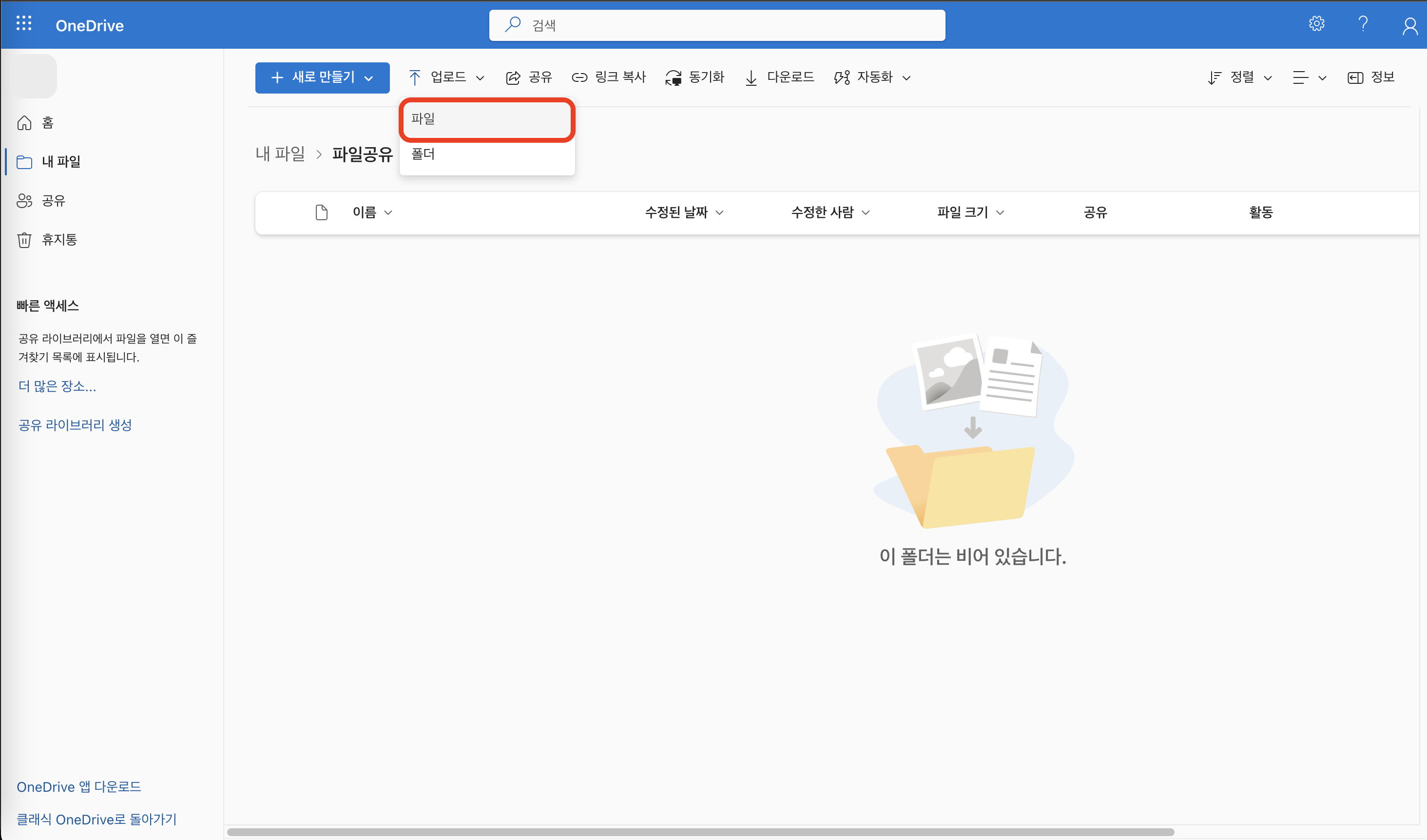 원드라이브에 업로드한 파일 공유